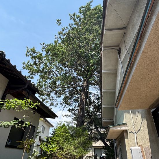 お隣さんや道路にも大きく枝が伸び、電線にもかかっています。