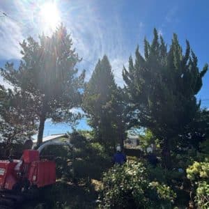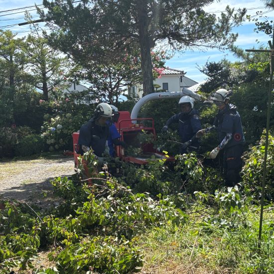 倒した木を捌き、どんどん粉砕していきます。