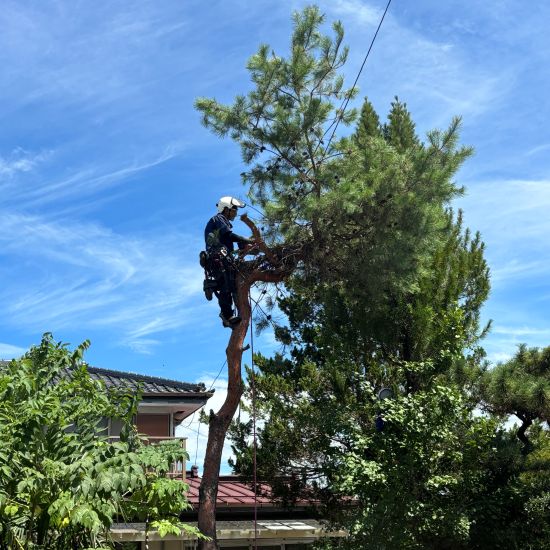 電線に掛かった部分も慎重に切っていきます。