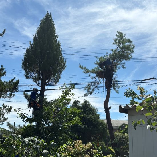 次は2本同時に登って伐採します。
