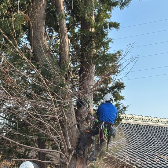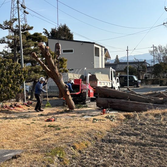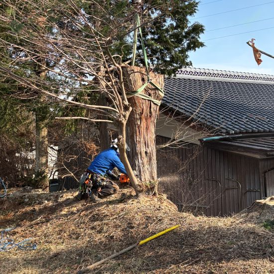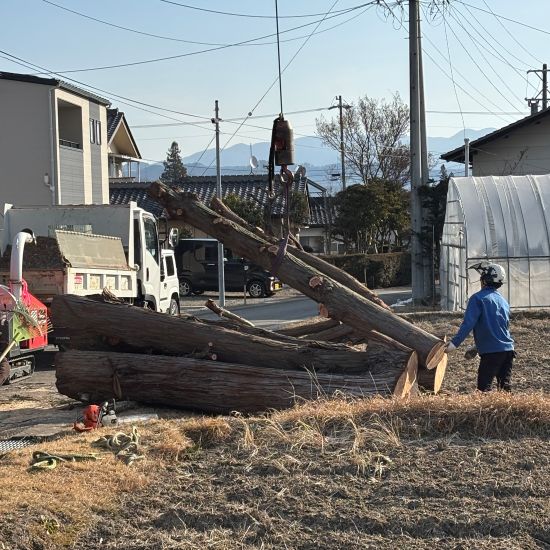 さて今回は、安曇野市穂高の檜の大木の伐採です。