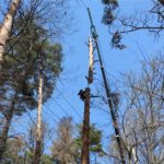 まずは登って、上部の枝葉を大きく切ってクレーンで降ろしていきます。